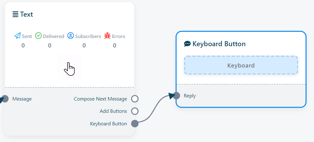 - لتضمين هذا المكوّن، اسحب مؤشر الماوس من "مقبس زر لوحة المفاتيح" لمكونات النص، أو الصورة، أو الصوت، أو الفيديو، أو الملف، ثم حرّره في المحرر. سيؤدي هذا الإجراء فورًا إلى توصيل مكوّن لوحة المفاتيح بالمكوّن الرئيسي.