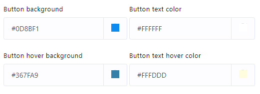 8. قم بتحديد الألوان لخلفية زر عنصر واجهة المستخدم للدردشة، ولون نص الزر، وخلفية تحريك الزر، ولون تحريك نص الزر.