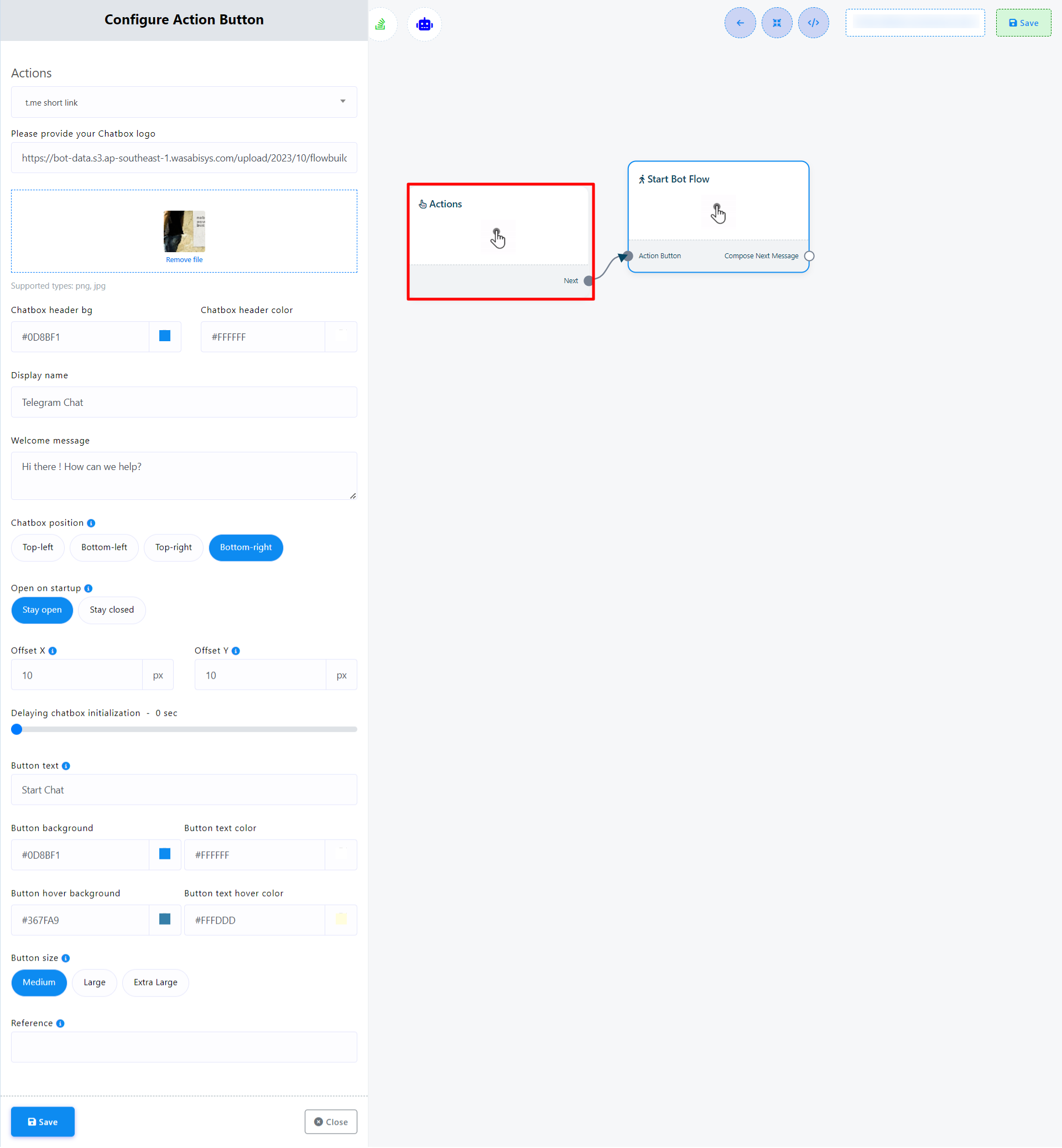 3. قم بتكوين زر الإجراء عن طريق ملء الحقول التالية والنقر فوق "حفظ":