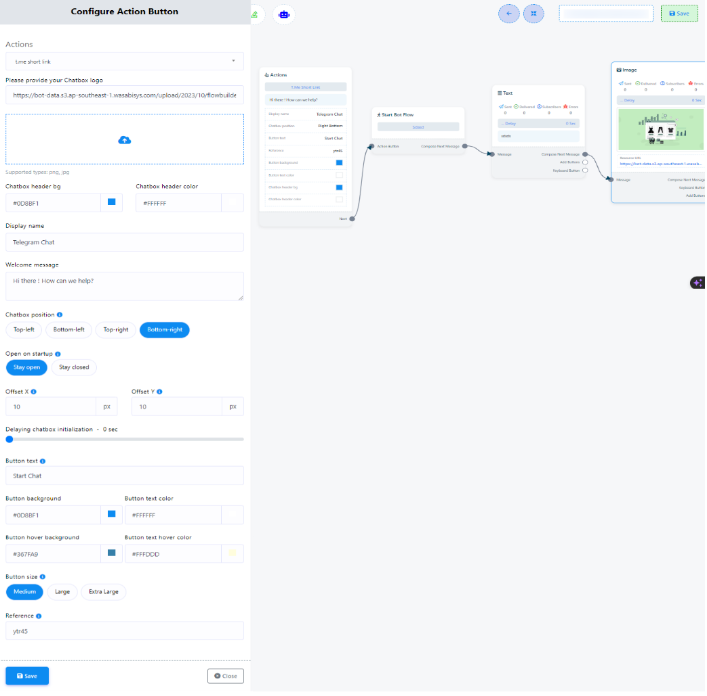6. الآن، لنُضِف الرد المطلوب من منفذ بدء تدفق البوت إلى أداة الدردشة. يُمكننا استخدام أي نوع من الردود، سواءً نصية أو صورية أو صوتية أو فيديو، أو أي شيء آخر. ثم احفظ تدفق البوت.
