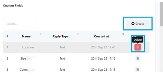 • انقر فوق "إنشاء" في قسم الحقول المخصصة لإنشاء حقل مخصص جديد لاستخدامه في تدفقات إدخال المستخدم.
