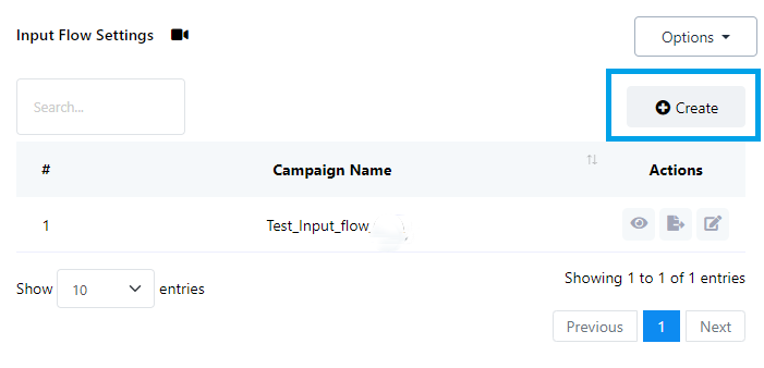 1. انقر فوق الزر "إنشاء" لبدء إنشاء تدفق إدخال مستخدم جديد.
