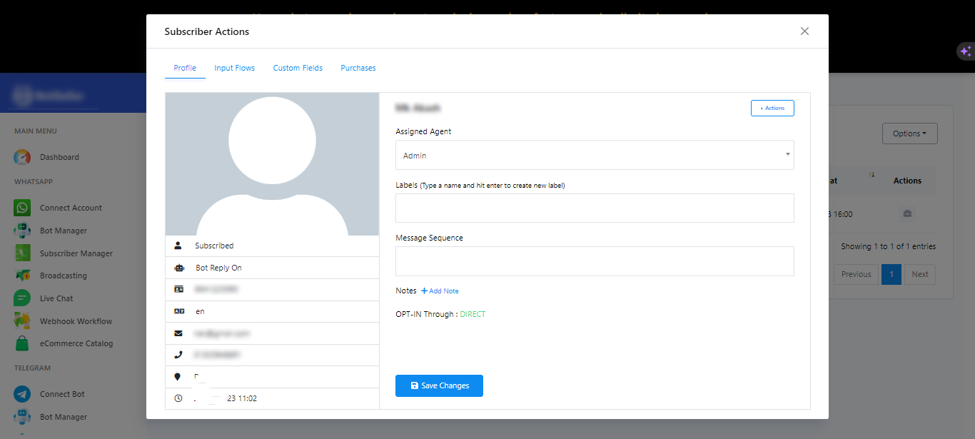 إدارة إجراءات المشتركين: بعد النقر على زر التقرير، سيُنقلك إلى مدير المشتركين في تدفق الإدخال، حيث يمكنك الاطلاع على التقارير الخاصة بمشترك محدد.