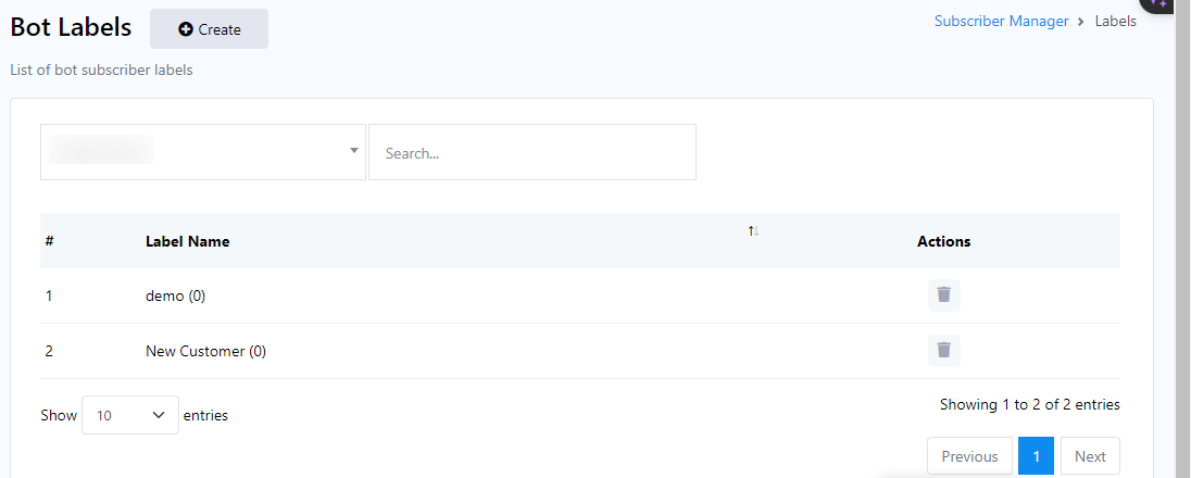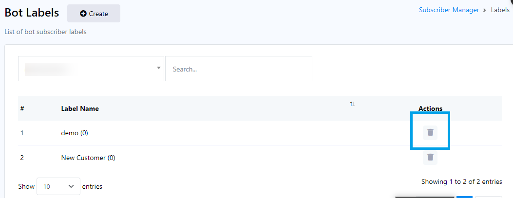 - إذا كنت ترغب في ربط تسمية ببوت معين، فانقر على القائمة المنسدلة، وبعد تحديد بوت، سيتم عرض التسميات المرتبطة بهذا البوت أدناه.