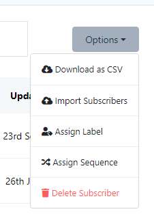 - انقر فوق القائمة "استيراد المشتركين"، والتي ستفتح نموذجًا منبثقًا بعنوان "استيراد المشتركين".