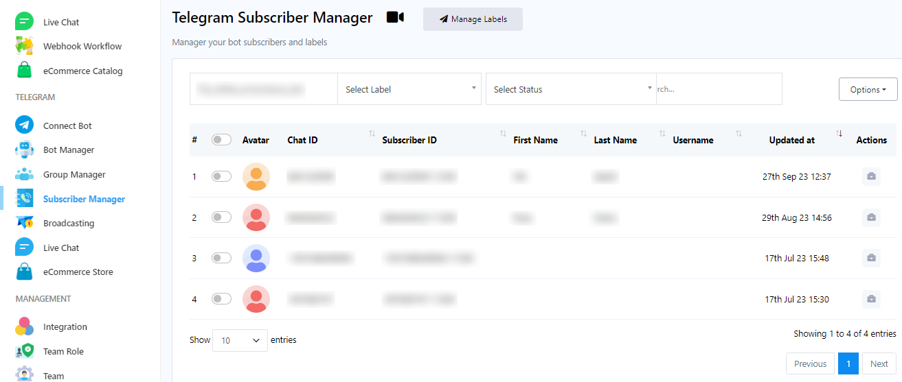 لإدارة العلامات بشكل فعال، يرجى اتباع الخطوات التالية داخل مدير مشتركي Telegram: