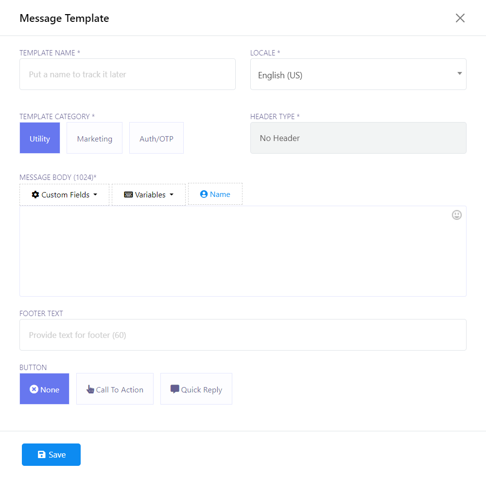 14. Optionally, you can add a button for your template. There are two types to choose from: `Call To Action` and `Quick Reply`. For these buttons, a reply will be needed when using them for practical purpose.