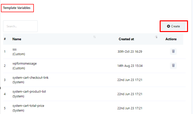 يمكنك استخدام متغيرات القالب من قسم "متغير القالب". إذا كنت ترغب في إنشاء متغير جديد، يمكنك ذلك بالنقر على زر "إنشاء" ضمن قسم "متغير القالب".