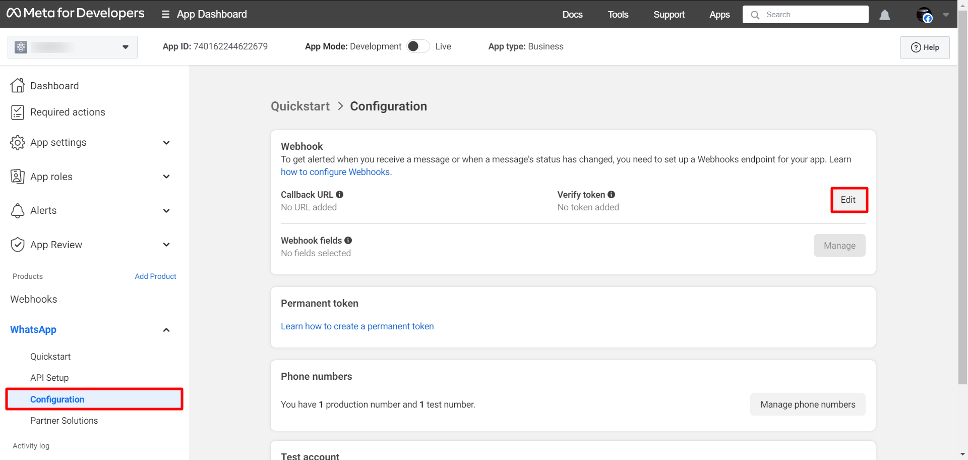 في أعلى الصفحة، ستجد رابط استدعاء Webhook ورمز التحقق. انسخهما وارجع إلى صفحة إعدادات مطور فيسبوك.