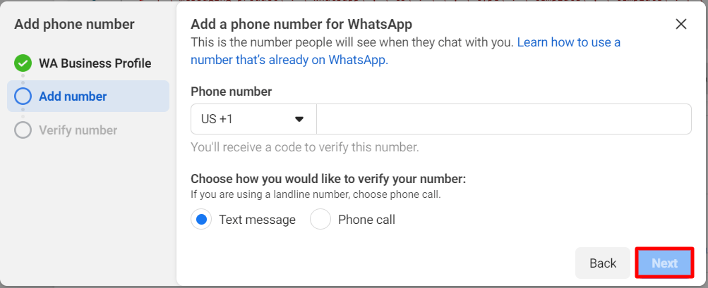 حسنًا، بعد تقديم رقم هاتفك واختيار خيار التحقق، انقر فوق الزر التالي.