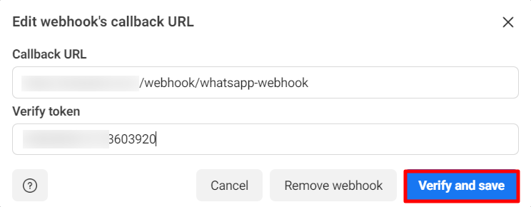 ثم ألصق رابط استدعاء Webhook ورمز التحقق في حقليهما. انقر الآن على زر التحقق والحفظ.