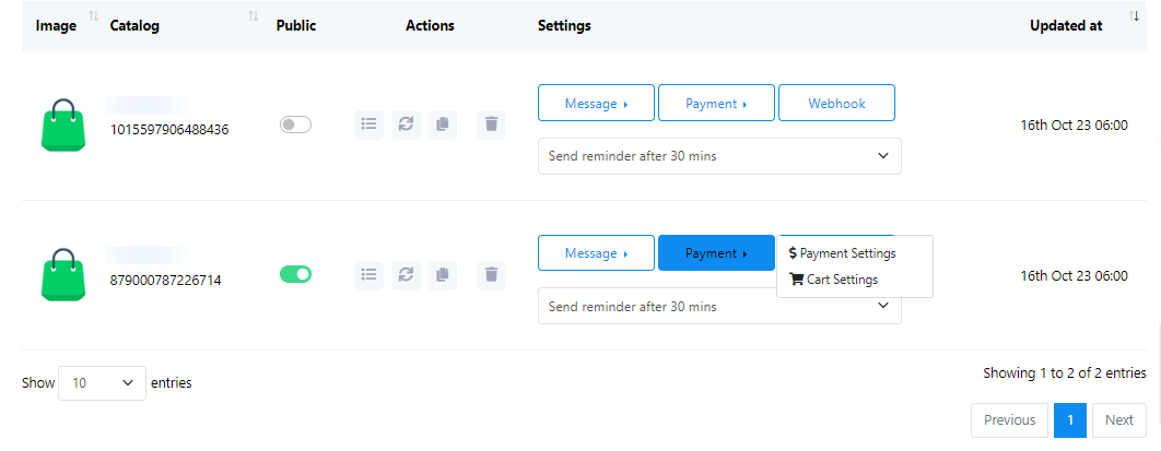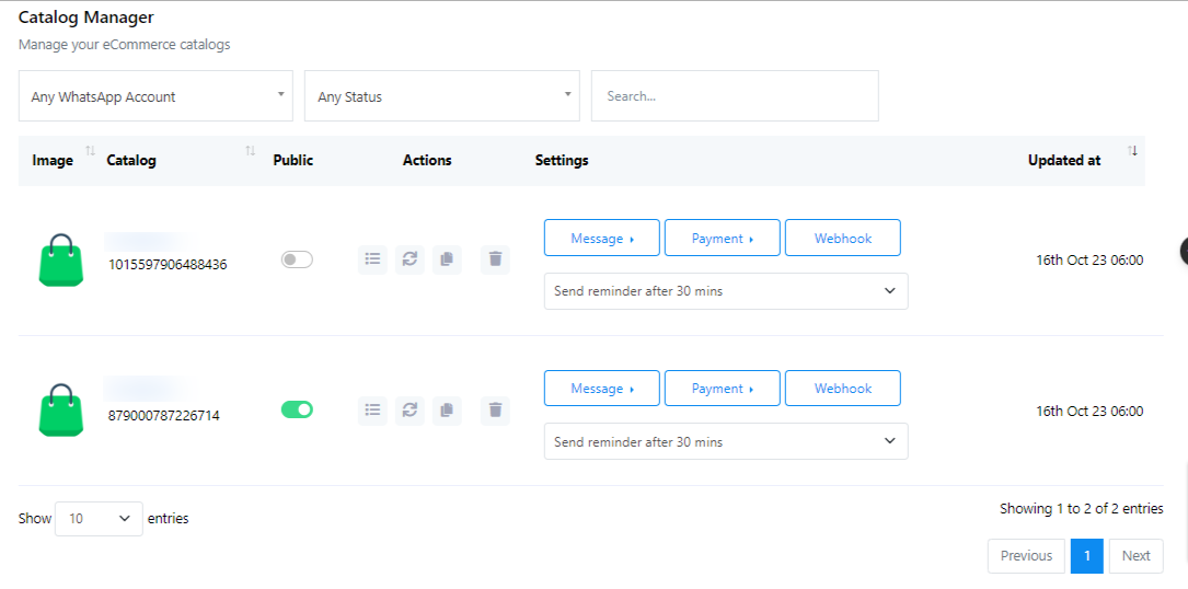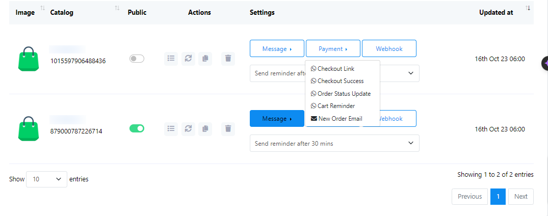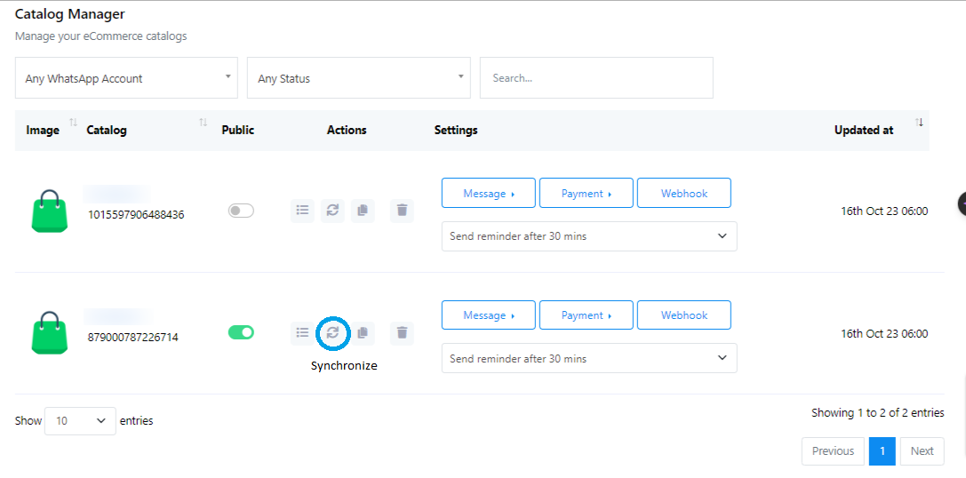 - ضمن "الإجراءات"، يمكنك عرض منتجات الكتالوج. مزامنة أي منتجات مُضافة أو مُحدَّثة.
