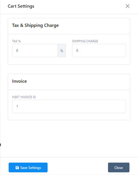 - قم بتكوين إعدادات عربة التسوق، بما في ذلك نسبة الضريبة ورسوم الشحن.