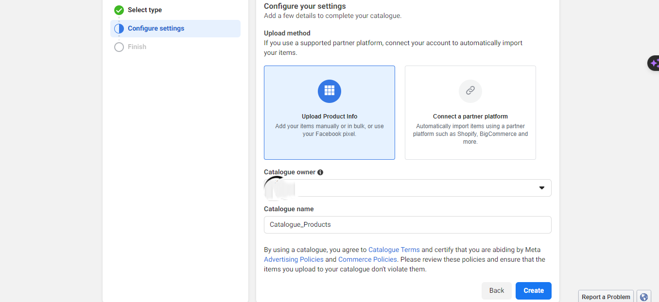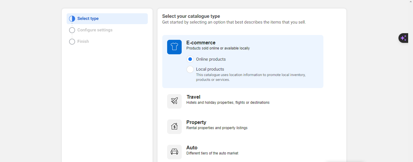- اختر نوع الكتالوج "التجارة الإلكترونية".